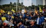 REPUBLIKA.CO.ID, JAKARTA -- Aksi protes kenaikan harga BBM berlangsung beberapa titik di Kota Jakarta. Salah satu konsentrasi massa terjadi di Bundaran Patung Arjuna Wiwaha.