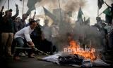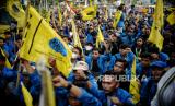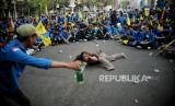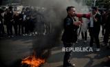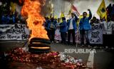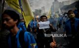 REPUBLIKA.CO.ID, JAKARTA -- Massa aksi dari berbagai kesatuan aksi mahasiswa melakukan unjuk rasa di kawasan Patung Kuda, Jakarta, Senin (5/8/2022). Dalam aksinya mereka menolak kenaikan harga bahan bakar minyak (BBM).