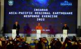 Kepala Basarnas Marsekal Madya TNI Henri Alfiandi (tengah), Sekretaris International Search and Rescue Advisory Group (INSARAG) Peter Muller (kiri) dan Wakil Gubernur Bali Tjokorda Oka Artha Ardana Sukawati (kanan) membuka kegiatan INSARAG Asia-Pacific Regional Earthquake Response Exercise (INSARAG AP ERE) 2022 di Nusa Dua, Badung, Bali, Senin (5/9/2022). Pelatihan yang dihadiri ratusan peserta dari 20 negara tersebut bertujuan untuk meningkatkan kesiapsiagaan dan koordinasi tanggap darurat secara nasional maupun internasional guna merespon dengan cepat kejadian kedaruratan bencana khususnya gempa bumi. (FOTO : ANTARA/Fikri Yusuf)