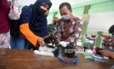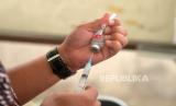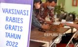 Veteriner Dinas Pertanian dan Pangan Kota Yogyakarta mengambil vaksin rabies untuk vaksinasi kucing saat Bulan Vaksinasi Rabies Gratis di Kelurahan Parangpuluhan, Yogyakarta, Selasa (6/9/2022). Vaksinasi rabies gratis ini menyasar 2.600 hewan peliharaan warga seperti kucing, anjing, dan kera. Kegiatan ini dilakukan hingga 28 September mendatang bergantian di 45 kantor kelurahan Kota Yogyakarta. Meski Kota Yogyakarta bebas rabies sejak 1997, vaksinasi rabies ini tetap dilakukan untuk mengantisipasi kasus rabies muncul kembali. (FOTO : Republika/Wihdan Hidayat)