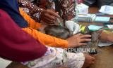 Veteriner Dinas Pertanian dan Pangan Kota Yogyakarta menyuntik vaksin rabies pada kucing saat Bulan Vaksinasi Rabies Gratis di Kelurahan Parangpuluhan, Yogyakarta, Selasa (6/9/2022). Vaksinasi rabies gratis ini menyasar 2.600 hewan peliharaan warga seperti kucing, anjing, dan kera. Kegiatan ini dilakukan hingga 28 September mendatang bergantian di 45 kantor kelurahan Kota Yogyakarta. Meski Kota Yogyakarta bebas rabies sejak 1997, vaksinasi rabies ini tetap dilakukan untuk mengantisipasi kasus rabies muncul kembali. (FOTO : Republika/Wihdan Hidayat)
