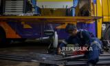Instruktur menyalakan alat las listrik saat pelatihan di Pancoran, Jakarta, Selasa (6/9/2022). Dinas Tenaga Kerja Transmigrasi dan Energi DKI Jakarta mengadakan pelatihan mengelas listrik gratis yang diikuti oleh 10 warga agar dapat memahami teknik dasar las untuk pembekalan siap bekerja baik di bidang industri maupun wirausaha. Republika/Putra M. Akbar (FOTO : Republika)