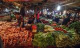 Pedagang ayam potong dan sayur mayur melayani pembeli di Pasar Cibinong, Kabupaten Bogor, Jawa Barat, Selasa (6/9/2022). Menurut pedagang hampir semua bahan pangan naik mengikuti pemberlakuan harga baru BBM, diantaranya cabai merah keriting naik dari harga Rp60 ribu menjadi Rp75 ribu per kilogram, bawang merah naik dari Rp20 ribu menjadi Rp28 ribu per kilogram, cabai rawit hijau naik dari harga Rp38 ribu menjadi Rp50 ribu per kilogram, ayam ras naik dari Rp25 ribu menjadi Rp28 ribu per kilogram dan telur ayam ras naik dari Rp25 ribu menjadi Rp30 ribu per kilogram. (FOTO : ANTARA/Yulius Satria Wijaya)