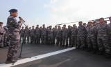 Pangkoarmada II Laksamana Muda TNI T.S.N.B Hutabarat (kiri) memberikan pengarahan kepada sejumlah personel TNI Angkatan Laut saat pelepasan Satgas Latihan Bersama (Latma) Multilateral Naval Exercise Kakadu 2022 di atas KRI Raden Eddy Martadinata-331 di Koarmada II, Surabaya, Jawa Timur, Selasa (6/9/2022). TNI Angkatan Laut mengirim KRI Raden Eddy Martadinata-331 dengan membawa 132 personelnya untuk mengikuti latihan bersama di perairan utara Australia itu guna mempererat kerja sama antara TNI Angkatan Laut dengan negara-negara peserta latihan bersama lainnya. (FOTO : ANTARA/Didik Suhartono)