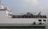 REPUBLIKA.CO.ID,SURABAYA -- Sejumlah personel TNI Angkatan laut melambaikan tangan dari atas KRI Raden Eddy Martadinata-331 saat pelepasan Satgas Latihan Bersama (Latma) Multilateral Naval Exercise Kakadu 2022 di Koarmada II, Surabaya, Jawa Timur, Selasa (6/9/2022).
