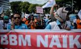 Massa buruh menolak kenaikan harga BBM serta menuntut peningkatan upah minimum. .