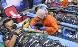 REPUBLIKA.CO.ID, JAKARTA -- Sejumlah prajurit TNI Angkatan Laut mendonorkan darahnya saat Bakti Kesehatan TNI AL di tank deck KRI Semarang-594 yang lego jangkar di Perairan Pulau Untung Jawa, Kepulauan Seribu, Jakarta, Selasa (6/9/2022).