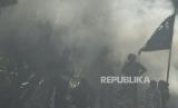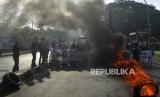 REPUBLIKA.CO.ID, MAKASSAR -- Mahasiswa berorasi dan membakar ban bekas saat berunjuk rasa di Makassar, Sulawesi Selatan, Selasa (6/9/2022). Unjuk rasa mahasiswa yang menolak kenaikan harga bahan bakar minyak (BBM) masih terjadi di sejumlah lokasi di Makassar.