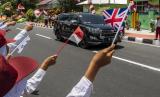 REPUBLIKA.CO.ID, BELITUNG -- Sejumlah siswa SDN 45 Tanjungpandan mengibarkan bendera saat menyambut kedatangan perwakilan delegasi Development Working Group (DWG) G20 dari berbagai negara di Belitung, Kepulauan Bangka Belitung, Selasa (6/9/2022).