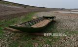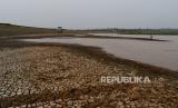 REPUBLIKA.CO.ID, Kondisi Waduk Dawuhan yang airnya menyusut di Kabupaten Madiun, Jawa Timur, Selasa (6/9/2022). Waduk Dawuhan yang memiliki daerah irigasi seluas 2.823 hektare sawah tersebut tinggal menyisakan sedikit air akibat musim kemarau.