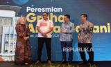 Plt Walikota Bekasi, Tri Adhianto Tjahyono (tengah), bersama Kepala Kantor OJK KR 1 Jakarta Banten Roberto Akyuwen (kanan) dan Direktur Utama PT BPR Syariah Cahyo Kartiko saat peresmian gedung baru Bank Syariah Artha Madani di Bekasi, Jawa Barat, Rabu (7/9/2022). BPR Syariah Artha Madani meresmikan kantor baru yang dihadirkan dengan konsep personal banking syariah. Konsep ini dihadirkan untuk meningkatkan kepercayaan dan kenyamanan kepada nasabah untuk mendapatkan layanan jasa keuangan syariah khususnya di kota Bekasi dan sekitarnya. (FOTO : Republika/Edwin Dwi Putranto)