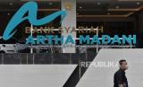 Warga berjalan di depan gedung baru Bank Syariah Artha Madani yang baru diresmikan di Bekasi, Jawa Barat, Rabu (7/9/2022). BPR Syariah Artha Madani meresmikan kantor baru yang dihadirkan dengan konsep personal banking syariah. Konsep ini dihadirkan untuk meningkatkan kepercayaan dan kenyamanan kepada nasabah untuk mendapatkan layanan jasa keuangan syariah khususnya di kota Bekasi dan sekitarnya. (FOTO : Republika/Edwin Dwi Putranto)