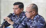 REPUBLIKA.CO.ID, JAKARTA -- Komandan Pusat Penerbangan Angkatan Laut (Danpuspenerbal) Laksamana Muda TNI Dwika Tjahja Setiawan (kiri) didampingi Kepala Dinas Penerangan Angkatan Laut (Kadispenal) Laksamana Pertama TNI Julius Widjojono memberikan keterangan pers terkait jatuhnya pesawat latih TNI AL jenis G-36 Bonanza T-2503 di Mabesal, Cilangkap, Jakarta, Rabu (7/9/2022).