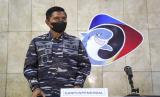 Komandan Pusat Penerbangan Angkatan Laut (Danpuspenerbal) Laksamana Muda TNI Dwika Tjahja Setiawan memberikan keterangan pers terkait jatuhnya pesawat latih TNI AL jenis G-36 Bonanza T-2503 di Mabesal, Cilangkap, Jakarta, Rabu (7/9/2022). Menurut Laksamana Muda TNI Dwika Tjahja Setiawan, pesawat latih TNI AL jenis G-36 Bonanza T-2503 tersebut hilang kontak sekitar pukul 09.30 WIB di Alur Pelayaran Barat Surabaya (APBS) yaitu di Perairan Laut Selat Madura (antara Kabupaten Bangkalan, Madura dan Gresik). (FOTO : ANTARA/M Risyal Hidayat)