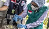 Petugas BPOM melakukan pengujian sampel makanan yang akan dikonsumsi oleh delegasi pertemuan G20 Development Ministerial Meeting (DMM) 2022 di Tanjungpandan, Belitung, Kepulauan Bangka Belitung, Kamis (8/9/2022). Pengujian tersebut dilakukan sebagai bentuk pengawasan terhadap segala bentuk makanan dan minuman dari bahan yang berbahaya bagi kesehatan para delegasi G20 Development Ministerial Meeting (DMM) 2022. (FOTO : ANTARA/Muhammad Adimaja)
