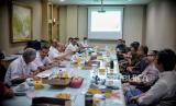 REPUBLIKA.CO.ID, JAKARTA -- Direktur Utama PT Pupuk Indonesia (Persero) Bakir Pasaman bersama jajaran direksi lainnya saat berkunjung ke kantor Republika, Jakarta, Jumat (9/9/2022). Dalam kunjungan tersebut membahas tentang isu terkini terkait PT Pupuk Indonesia serta transformasi digitalisasi penyaluran pupuk subsidi.