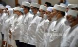 Para Pengurus Ikatan Persaudaraan Haji Indonesia (IPHI) DKI Jakarta hadir pada acara Pelantikan Pengurus Wilayah DKI Jakarta IPHI di Balai Agung, Jakarta, Jumat (9/9/2022). Mohamad Taufik dilantik sebagai Ketua IPHI DKI Jakarta bersama pengurus IPHI DKI Jakarta lainya masa bakti tahun 2022-2026. (FOTO : Republika/Prayogi)