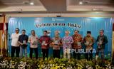 Sekretaris Umum PP Muhammadiyah, Abdul Muti (tengah) bersama Wakil Ketua MPR, Ahmad Basarah (keempat kiri), Ketua PP Muhammadiyah Hajriyanto Y Thohari (keempat kanan), Duta Besar Ukraina untuk Indonesia, Vasyl Hamianin (kanan) beraama pengurus PP Muhammadiyah lainnya saat peluncuran buku di Gedung PP Muhammadiyah, Jakarta, Jumat (9/9/2022). (FOTO : Republika/Thoudy Badai)
