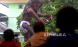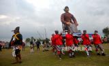 Bekakak atau ogoh-ogoh yang dibuat warga untuk Saparan Bekakak di Gamping, Sleman, Yogyakarta, Jumat (9/9/2022). Setalah ditiadakan selama pandemi Covid-19 lalu, upacara Saparan Bekakak kembali diadakan kembali di Gamping. Tradisi adat. masyarakat gamping ini menjadi salah satu daya tarik wisatawan, karena adanya kirab bekakak yang diadakan setahun sekali setiap Bulan Safar. (FOTO : Republika/Wihdan Hidayat)