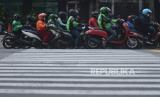 REPUBLIKA.CO.ID, JAKARTA -- Pengemudi ojek online melintas di kawasan Mampang Prapatan, Jakarta, Jumat (9/9/2022). Kementerian Perhubungan merevisi kenaikan tarif ojek online (ojol) dari sebelumnya berkisar 30-50 persen menjadi 6-13 persen yang akan diberlakukan mulai 10 September 2022.