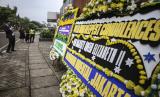 REPUBLIKA.CO.ID, JAKARTA -- Petugas membawa karangan bunga belasungkawa atas wafatnya Ratu Elizabeth II di Kedutaan Besar Inggris, Jakarta, Jumat (9/9/2022). Ratu Elizabeth II wafat pada 8 September 2022 dalam usia 96 tahun.