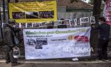 APRTN melakukan aksi di depan lokasi penertiban aset PT KAI di Jalan Laswi, Bandung..