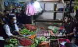 Gubernur Jawa Barat Ridwan Kamil berbincang dengan pedagang sayuran saat kunjungan ke Pasar Tradisional Baltos, Kota Bandung, untuk memantau harga kebutuhan pokok pasca kenaikan BBM, Senin (12/9). Dalam kegiatan itu, Gubernur Jawa Barat menemukan sejumlah fenomena seperti produk mengecil, kenaikan harga bahan makanan perikanan dan pembeli daging sapi maupun ayam mengalami penurunan meski harga tidak mengalami kenaikan. (FOTO : Edi Yusuf/Republika)