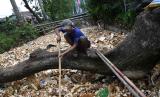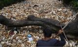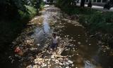 Warga membersihkan sampah styrofoam yang mencemari Kali Licin, Mampang, Pancoran Mas, Depok, Jawa Barat, Senin (12/9/2022). Setelah tercemar sampah styrofoam pada beberapa bulan lalu, kali tersebut kembali tercemar dengan hal serupa sehingga bisa menyebabkan aliran air kali tersumbat dan meluap. (FOTO : ANTARA/Sigid Kurniawan)