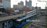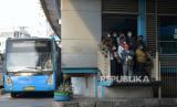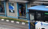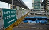 REPUBLIKA.CO.ID,JAKARTA -- Bus Transjakarta menaikan dan menurunkan penumpang di Halte Kampung Melayu, Jakarta, Senin (12/9/2022).
