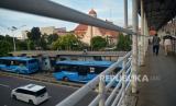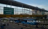 Sejumlah penumpang berjalan menuju halte bus Transjakarta di Halte Matraman, Jakarta, Senin (12/9/2022). Dalam rangka meningkatkan layanan kepada penumpang, PT Transportasi Jakarta (Transjakarta) melakukan perpanjangan jam operasional layanan bus menjadi 24 jam. Kebijakan efektif berlaku mulai berlaku pada Senin (12/9/2022) di 13 koridor. Republika/Prayogi. (FOTO : Republika/Prayogi.)