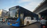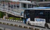 Bus Transjakarta melitas di Kawasan Terminal Kampung Melayu, Jakarta, Senin (12/9/2022). Dalam rangka meningkatkan layanan kepada penumpang, PT Transportasi Jakarta (Transjakarta) melakukan perpanjangan jam operasional layanan bus menjadi 24 jam. Kebijakan efektif berlaku mulai berlaku pada Senin (12/9/2022) di 13 koridor. Republika/Prayogi. (FOTO : Republika/Prayogi.)