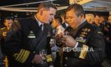 Atase Pertahanan RI di Canberra, Australia Laksamana Pertama TNI A. AG. B. Oka Wirayudhatama (kanan) berbincang dengan Chief of Navy Royal Australian Navy Vice Admiral Mark Hammond (kiri) saat menghadiri malam Cocktail Party di atas geladak KRI Bima Suci-945 di Dermaga Royal Australian Naval Base HMAS Kuttabul Potts Point Sydney, New South Wales, Australia, Senin (12/9/2022). Cocktail Party yang dihadiri pejabat setempat tersebut menampilkan sejumlah lagu dan tarian kreasi budaya Indonesia yang dikemas secara modern. (FOTO : ANTARA FOTO/Nova Wahyudi)