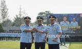 REPUBLIKA.CO.ID, JAKARTA -- Pejabat lama Panglima Komando Operasi Udara I (Pangkoopsud I) Marsda TNI Tedi Rizalihadi (kiri) bersama pejabat baru Panglima Komando Operasi Udara I (Pangkoopsud I) Marsma TNI Bambang Gunarto (tengah) mengucapkan sumpah jabatan saat upacara serah terima jabatan Pangkoopsud I di Lapangan Makoopsud I, Jakarta, Selasa (13/9/2022). Marsma TNI Bambang Gunarto resmi menjabat sebagai Panglima Komando Operasi Udara I menggantikan Marsda TNI Tedi Rizalihadi.