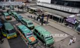 Sejumlah angkutan kota (Angkot) terparkir di Terminal Cicaheum, Kota Bandung, Selasa (13/9/2022). Pemerintah Kota Bandung melalui Dinas Perhubungan Kota Bandung dan pengusaha angkutan resmi menaikkan tarif angkot sebesar Rp1.000 yang berlaku sejak Senin (12/9/2022). Kenaikan tarif tersebut dampak dari kenaikan harga bahan bakar minyak (BBM) yang beberapa waktu lalu sudah ditetapkan oleh pemerintah. (FOTO : REPUBLIKA/ABDAN SYAKURA)