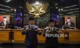 Gubernur DKI Jakarta Anies Baswedan (kiri) dan Wakil Gubernur DKI Jakarta Ahmad RizaPatria usai menghadiri sidang paripurna di Gedung DPRD DKI Jakarta, Selasa (13/9/2022). DPRD DKI Jakarta menggelar rapat paripurna pengumuman masa akhir kepemimpinan Gubernur DKI Jakarta Anies Baswedan dan Wakil Gubernur DKI Jakarta Ahmad Riza Patria 30 hari sebelum masa tugas berakhir. (FOTO : Republika/Putra M. Akbar)