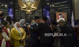 Gubernur DKI Jakarta Anies Baswedan dan Wakil Gubernur DKI Jakarta Ahmad Riza Patria bersalaman dengan anggota DPRD DKI Jakarta usai menghadiri sidang paripurna di Gedung DPRD DKI Jakarta, Selasa (13/9/2022). DPRD DKI Jakarta menggelar rapat paripurna pengumuman masa akhir kepemimpinan Gubernur DKI Jakarta Anies Baswedan dan Wakil Gubernur DKI Jakarta Ahmad Riza Patria 30 hari sebelum masa tugas berakhir. (FOTO : Republika/Putra M. Akbar)