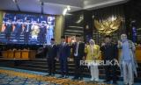 Gubernur DKI Jakarta Anies Baswedan (kedua kiri) bersama Wakil Gubernur DKI Jakarta Ahmad Riza Patria (kiri) dan Ketua DPRD DKI Jakarta Prasetyo Edi Marsudi (ketiga kiri) foto bersama usai penandatanganan surat pemberhentian pada sidang paripurna di Gedung DPRD DKI Jakarta, Selasa (13/9/2022). DPRD DKI Jakarta menggelar rapat paripurna pengumuman masa akhir kepemimpinan Gubernur DKI Jakarta Anies Baswedan dan Wakil Gubernur DKI Jakarta Ahmad Riza Patria 30 hari sebelum masa tugas berakhir. (FOTO : Republika/Putra M. Akbar)