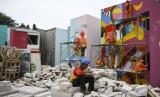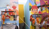 REPUBLIKA.CO.ID, JAKARTA -- Sejumlah petugas Penanganan Prasarana & Sarana Umum (PPSU) menyelesaikan pembuatan mural di Kampung Gembira Gembrong di Jakarta Timur, Selasa (13/9/2022). Menurut data Pemprov DKI Jakarta pembangunan 138 unit rumah bagi korban kebakaran di permukiman Kampung Gembira Gembrong telah mencapai 90 persen dan segera akan dihuni kembali pada akhir September mendatang.