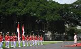 Sejumlah duta besar luar biasa dan berkuasa penuh (LBBP) negara-negara sahabat mendengarkan lagu Indonesia Raya seusai menyerahkan surat kepercayaan kepada Presiden Joko Widodo di Istana Merdeka, Jakarta, Selasa (13/9/2022). Presiden Joko Widodo menerima surat kepercayaan dari delapan duta besar luar biasa dan berkuasa penuh (LBBP) negara-negara sahabat yaitu negara Kanada, Thailand, Austria, Singapura, Belgia, Tanzania, Finlandia, dan Armenia. (FOTO : ANTARA/Sigid Kurniawan)