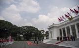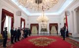 REPUBLIKA.CO.ID, JAKARTA -- Sejumlah duta besar luar biasa dan berkuasa penuh (LBBP) negara-negara sahabat (kanan) mendengarkan lagu Indonesia Raya seusai menyerahkan surat kepercayaan kepada Presiden Joko Widodo di Istana Merdeka, Jakarta, Selasa (13/9/2022).