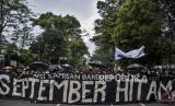 REPUBLIKA.CO.ID,BANDUNG -- Massa yang tergabung dalam Aksi Kamisan Bandung bersama mahasiswa melakukan aksi di depan Gedung DPRD Provinsi Jawa Barat, Jalan Diponegoro, Kota Bandung, Selasa (13/9/2022).
