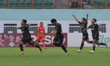 Sejumlah pesepakbola Borneo Fc Samarinda melakukan selebrasi usai gol yang dicetak Diego Michiels (kiri) ke gawang Bhayangkara Fc pada lanjutan Liga 1 di Cikarang, Kabupaten Bekasi, Jawa Barat, Selasa (13/9/2022). (FOTO : ANTARA/ Fakhri Hermansyah)
