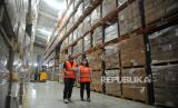 Senior Director & Country General Manager Herbalife Nutrition Indonesia Andam Dewi (kiri), General Manager DSV Solution Indonesia Aswin Siswanto (kanan) saat melakukan pengecekan produk di Mother Warehouse Herbalife Nutrition di Bekasi, Jawa Barat, Selasa (13/09/2022). Gudang penyimpanan ini menggandeng mitra DSV Solutions Indonesia sebagai pusat penyimpanan produk Herbalife Nutrition di Indonesia. Fasilitas penyimpanan ini dimonitor baik secara suhu dan indikator lainnya sebelum nantinya didistribusikan melalui total 131 saluran distribusi atau secara langsung kepada member Independen. Proses ini merupakan bagian dari proses Seed to Feed dikembangkan untuk menjaga kualitas produk Herbalife Nutrition melalui 14 langkah yang meliputi lima langkah pemeriksaan – dimulai dari bahan baku hingga sampai di pusat distribusi. Foto: Tahta Aidilla/Republika (FOTO : Tahta Aidilla/Republika)