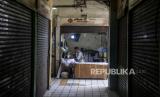 Pedagang melayani pembeli di dekat kios yang tutup di Pasar Mampang Prapatan, Jakarta, Rabu (14/9/2022). Sepinya pengunjung di pasar tersebut membuat para pedagang memilih menjual atau menyewakan kiosnya dan beralih memasarkan barang dagangannya secara daring.  (FOTO : Republika/Putra M. Akbar)