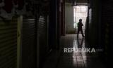 REPUBLIKA.CO.ID, JAKARTA -- Pengunjung berjalan di dekat kios yang tutup di Pasar Mampang Prapatan, Jakarta, Rabu (14/9/2022). Sepinya pengunjung di pasar tersebut membuat para pedagang memilih menjual atau menyewakan kiosnya dan beralih memasarkan barang dagangannya secara daring.