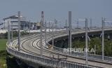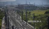 Suasana proyek pembangunan Kereta Cepat Jakarta Bandung (KCJB) di Depo KCJB Tegalluar, Kabupaten Bandung, Rabu (14/9/2022). Direktur Utama PT Wijaya Karya (Persero) Tbk Agung Budi Waskito menyatakan, proyek pembangunan Kereta Cepat Jakarta-Bandung sudah mencapai 88 persen dengan target operasionalisasi Juli 2023. Proyek tersebut diharapkan sudah bisa diuji coba pada akhir November 2022 dalam rangka Konferensi Tingkat Tinggi (KTT) G20.  (FOTO : REPUBLIKA/ABDAN SYAKURA)
