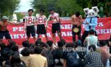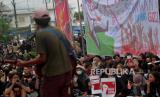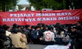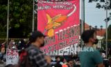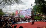 Massa aksi dari Aliansi Rakyat Bergerak (ARAK) menggelar Arak-arakan Tolak Kenaikan Harga BBM di Ngejaman, Malioboro, Yogyakarta, Kamis (15/9/2022). Pada unjuk rasa ini massa aksi terdiri dari mahasiswa, pelajar, dan masyarakat. Selain orasi, pada aksi ini juga diisi oleh pertunjukan oleh seniman Malioboro dan mahasiswa. (FOTO : Republika/Wihdan Hidayat)