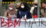 REPUBLIKA.CO.ID,YOGYAKARTA -- Massa aksi dari Aliansi Rakyat Bergerak (ARAK) menggelar Arak-arakan Tolak Kenaikan Harga BBM di Ngejaman, Malioboro, Yogyakarta, Kamis (15/9/2022).