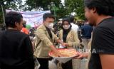 Peserta aksi dari Aliansi Rakyat Bergerak (ARAK) berkeliling mengambil donasi saat Arak-arakan Tolak Kenaikan Harga BBM di Ngejaman, Malioboro, Yogyakarta, Kamis (15/9/2022). Pada unjuk rasa ini massa aksi terdiri dari mahasiswa, pelajar, dan masyarakat. Selain orasi, pada aksi ini juga diisi oleh pertunjukan oleh seniman Malioboro dan mahasiswa. (FOTO : Republika/Wihdan Hidayat)