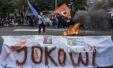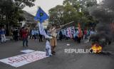 Mahasiswa dari berbagai perguruan tinggi melakukan aksi di depan Gedung DPRD Provinsi Jawa Barat, Jalan Diponegoro, Kota Bandung, Kamis (15/9/2022). Dalam aksi tersebut mereka menolak keputusan pemerintah menaikkan harga bahan bakar minyak (BBM) di tengah beban rakyat yang semakin berat akibat pandemi Covid-19 dan naiknya harga kebutuhan pokok. (FOTO : REPUBLIKA/ABDAN SYAKURA)